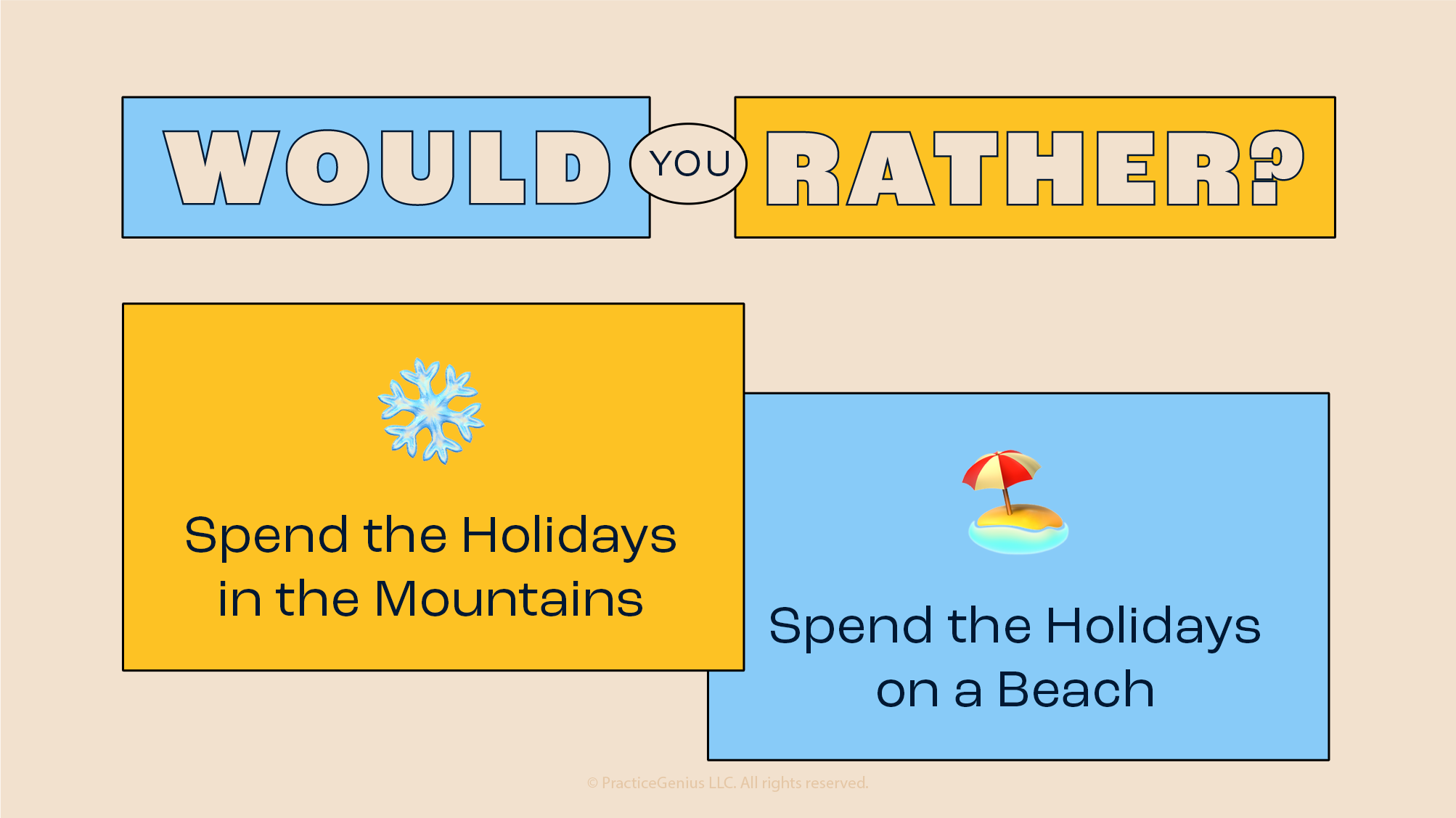 We're sorry, the survey "Would You Rather spend the holidays on a beach or…" has been closed.